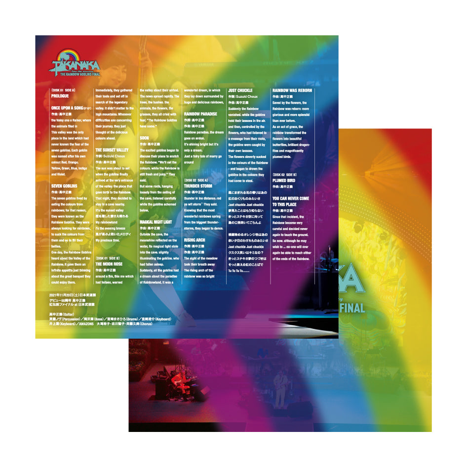 全2枚組【収録曲】1枚目[SIDE A]PROLOGUE/ONCE UPON A SONG/SEVEN GOBLINS/THE SUNSET VALLEY 1枚目[SIDE B]THE MOON ROSE/SOON/MAGICAL NIGHT LIGHT/RAINBOW PARADISE 2枚目[SIDE A]THUNDER STORM/RISING ARCH/JUST CHUCKLE/RAINBOW WAS REBORN 2枚目[SIDE B]PLUMED BIRDS/YOU CAN NEVER COME TO THIS PLACE